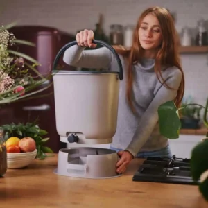 Bokashi Organko Essential er en løsning, der hjælper dig med at minimere dit køkkenaffald og give det nyt formål. Op mod 57 % af alt organisk affald ender i den blandede skraldespand, hvor det udleder store mængder drivhusgasser. Når du bruger Bokashi Organko Essential, fermenteres madresterne under lufttætte forhold, så de ikke rådner eller tiltrækker fluer. Efter blot 1-2 måneder kan du udnytte den fermenterede masse som en førsteklasses kompostbase, og den næringsrige bokashi-væske er et ekstra resultat af processen. Du kan endda reducere mængden af organisk affald med 25 %, og selve beholderen er fremstillet af 100% genbrugs plast. Bokashi Organko Essential tåler maskinopvask op til 55 °C eller i et særligt sparsomt program, så du nemt kan holde den ren.