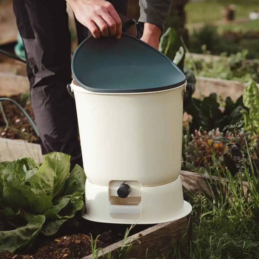 Bokashi Organko Essential er en løsning, der hjælper dig med at minimere dit køkkenaffald og give det nyt formål. Op mod 57 % af alt organisk affald ender i den blandede skraldespand, hvor det udleder store mængder drivhusgasser. Når du bruger Bokashi Organko Essential, fermenteres madresterne under lufttætte forhold, så de ikke rådner eller tiltrækker fluer. Efter blot 1-2 måneder kan du udnytte den fermenterede masse som en førsteklasses kompostbase, og den næringsrige bokashi-væske er et ekstra resultat af processen. Du kan endda reducere mængden af organisk affald med 25 %, og selve beholderen er fremstillet af 100% genbrugs plast. Bokashi Organko Essential tåler maskinopvask op til 55 °C eller i et særligt sparsomt program, så du nemt kan holde den ren.
