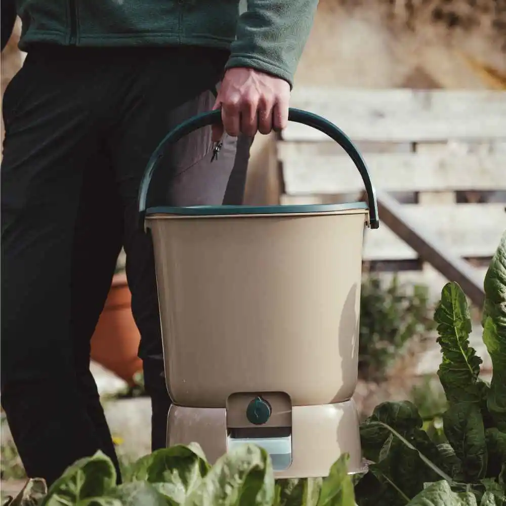 Bokashi Organko Essential er en løsning, der hjælper dig med at minimere dit køkkenaffald og give det nyt formål. Op mod 57 % af alt organisk affald ender i den blandede skraldespand, hvor det udleder store mængder drivhusgasser. Når du bruger Bokashi Organko Essential, fermenteres madresterne under lufttætte forhold, så de ikke rådner eller tiltrækker fluer. Efter blot 1-2 måneder kan du udnytte den fermenterede masse som en førsteklasses kompostbase, og den næringsrige bokashi-væske er et ekstra resultat af processen. Du kan endda reducere mængden af organisk affald med 25 %, og selve beholderen er fremstillet af 100% genbrugs plast. Bokashi Organko Essential tåler maskinopvask op til 55 °C eller i et særligt sparsomt program, så du nemt kan holde den ren.