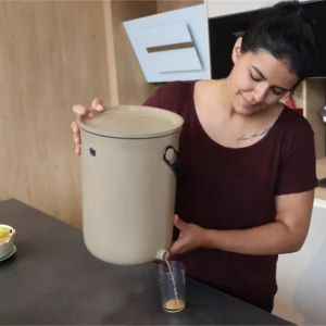 - Fermenteringsvæsken (også kaldet ”bokashi juice”) skal tappes via hanen cirka hver eller hver anden dag.