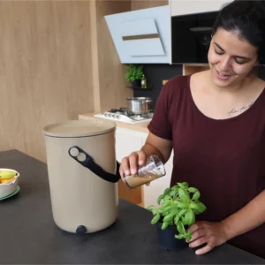 Bokashi-metoden fermenterer dit madaffald i en lufttæt beholder ved hjælp af mikroorganismer, så det ikke rådner. Affaldet omdannes ikke til jord i spanden, men først når den blandes med jord. Fordelen er, at du undgår lugt, fluer og orme, og du behøver ikke bruge poser. Du tømmer typisk beholderen én til to gange om måneden. Fordi affaldet fermenteres og falder sammen, kan en 15-liters spand rumme mere, end man skulle tro. Bokashi-metoden er dermed en enkel, lugtfri og pladsbesparende måde at genbruge dit køkkenaffald på.