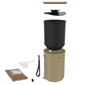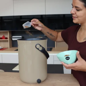 - Hver gang du er færdig med at tilføje mad eller grønt affald, skal låget lukkes helt for at skabe en anaerob (iltfri) proces.