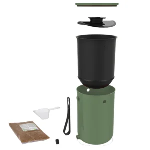 - Hver gang du er færdig med at tilføje mad eller grønt affald, skal låget lukkes helt for at skabe en anaerob (iltfri) proces.